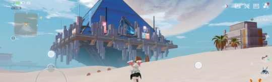 3、这次更新的地图场景中,镜都也是能让人眼前一亮的地方。在维拉大地图二队茫茫沙漠中奔跑,不经意间的抬头,很有可能就会让你的视线突然被某个悬浮在半空中的巨大蓝色菱形晶体所吸引。这个巨大的像是一正一反两个三棱锥拼接起来的巨大晶体,就是这次《幻塔》2.0版本更新的另一个小场景镜都。
