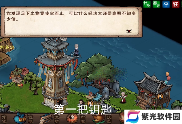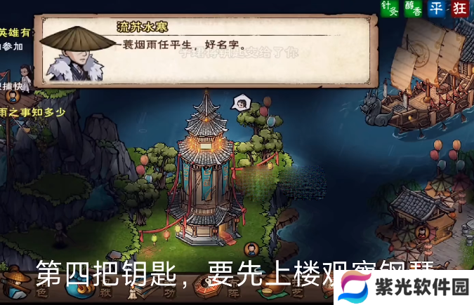 4、第四把钥匙:(7,21)先上乘虚楼观察钢琴,再去找子珺打听,约好后子时乘虚楼上楼弹琴