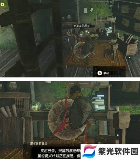 2、进去后这里是有一个小屋子,那么玩家是可以在这里找到塞尔达的日记,玩家们是可以从中知道新的英杰服位置是在哪。