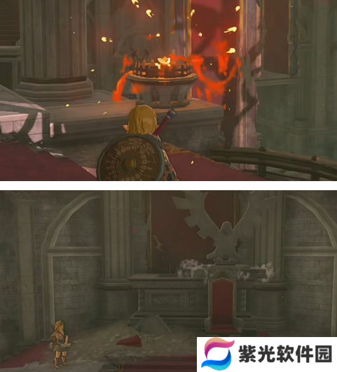 5、将这个2个火堆给点燃起来,因为这里点燃了,机关才可以运转,然后将下方的宝箱给露出来。