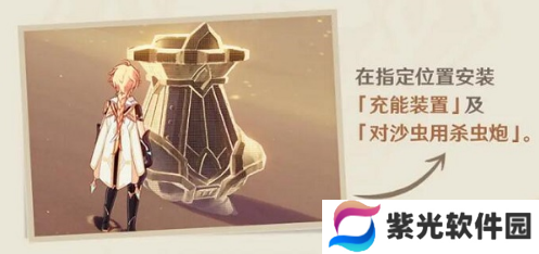 在指定位置安装「充能装置」及「对沙虫用杀虫炮」。