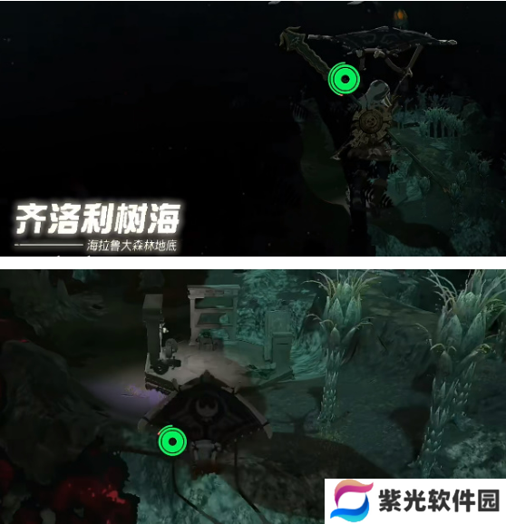 2、来到底部进入齐洛利树海区域,我们朝着下图的方向移动。