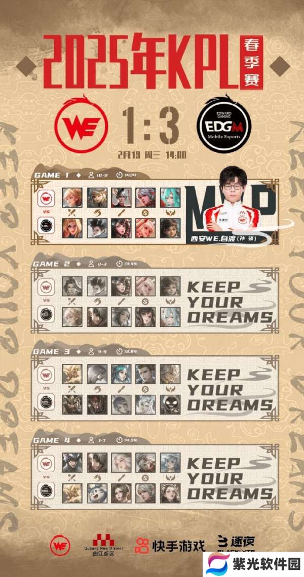 在刚刚结束的2025KPL春季赛常规赛西安WE vs 上海EDG.M的比赛中,我们以1:3的比分遗憾落败。