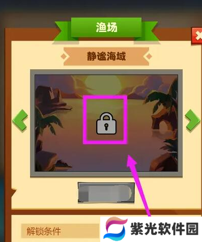 3、然后在这里的界面当中解锁静谧海域就能够进行钓鱼了。