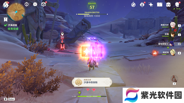 5.随后我们再次跟随仙灵,就可以出来啦,完成了任务,获得成就:沙漠中的探险。