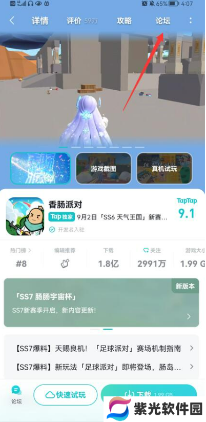 2、点击香肠派对这个游戏,点击右上角的论坛。