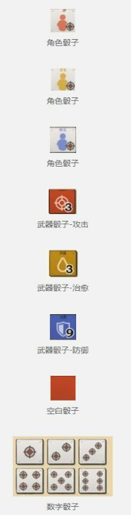 骰子有红黄蓝三种,分别对应攻击/治疗/防御。