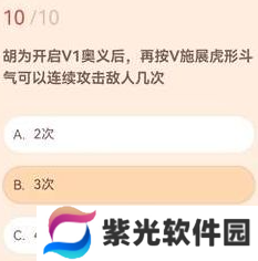 10、胡为开启v1奥义后,再按v施展虎形斗气可以连续攻击敌人几次?