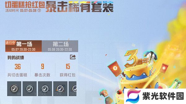 和平精英三周年切蛋糕活动规则说明:亲爱的特种兵们,3周年快乐!欢迎参与本次周年庆切蛋糕抢红包活动,我们准备了丰厚的奖励等着你活动预约时间2022年5月2日-2022年5月6日活动开启时间2022年5月7日-2022年5月8日 22:30红包雨开启时间指定时段登录大厅触发全屏蛋糕掉落红包雨场次一:5月7日 20:30-22:30场次二:5月8日 20:30-22:30玩法一览预约:在红包雨未开启前,玩家可通过面板跳转小程序进行预约,届时活动开启后可收到相关通知切蛋糕抢红包:-玩家通过单手指切击蛋糕可累计红包,单层蛋糕1分,双层蛋糕2分,根据玩家当前累计红包数量,会不断提升难度单场获取红包最高上限为90。在最后5秒时,三周年大蛋糕掉落,玩家连续切击可快速暴击累积红包最后根据获得分数结算红包个数,获得对应数量的奖励在规定时间内,参与活动但未获得奖励的玩家,可在活动面板重新点击进行参与单用户单日只能获得一次活动奖励