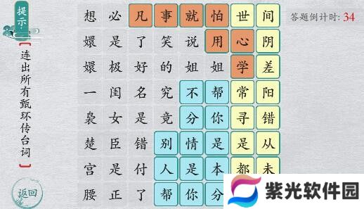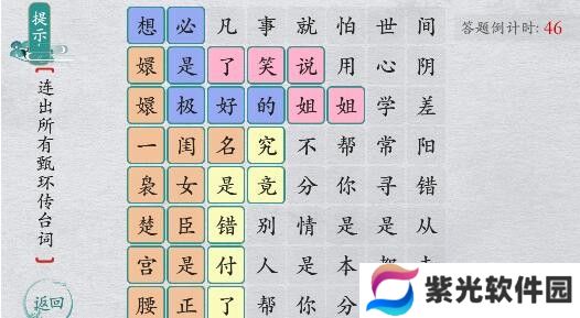 离谱的汉字甄嬛传台词是最近火爆的手游离谱的汉字中的一个关卡,游戏中给出多个汉字,玩家要快速传出甄嬛传中的台词。许多没看过甄嬛传的小伙伴都想知道怎么通关,下面就是维特软件园为大家整理的离谱的汉字甄嬛传台词攻略。