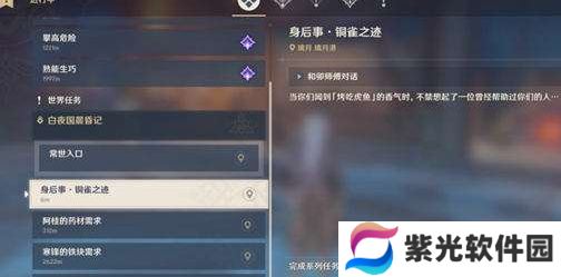 原神身后事铜雀之迹怎么触发?原神铜雀之迹是璃月港中的一个任务,当我们问道烤吃虎鱼的味道时,就会想起一位曾经帮助过我们的人。那么原神铜雀之迹怎么触发呢?不知道的小伙伴不用担心,今天小编为大家准备了一篇攻略,相信能让你们有所收获的,快一起来看看吧!