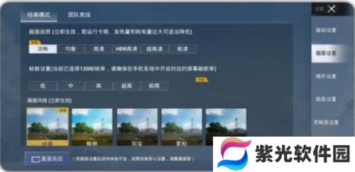 2、进入软件以后,选择你想要修改的画质。正常打游戏的话,推荐:流畅+120帧率。