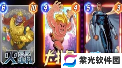 灭霸有3颗宝石可以被光谱buff,通过铠保护紫色宝石不被对手删去,最终集齐6颗宝石,灭霸会达到最强的20战力。