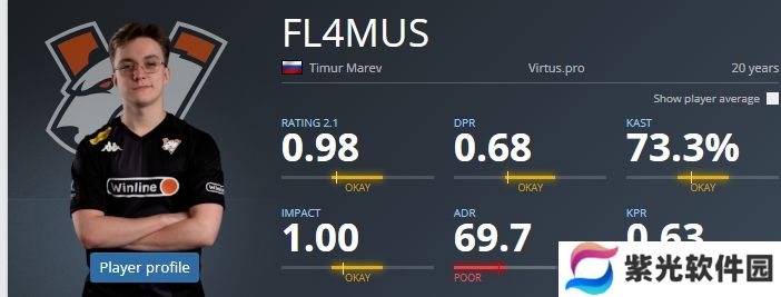 Vitality无缘正赛,但FL4MUS依旧打出不俗表现,取得了1.11 rating和0.72 KRP的数据表现。