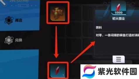 3、打开约娜商会,找到初火微尘,我们可以用初火灵砂来进行购买。