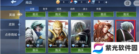 2.第二步:在英雄一览里面就可以找到【唱跳王子】也就是蔡徐坤的皮肤,点击进入就可以购买了;