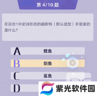 4、在召合1中史诗形态的喵斯特(默认造型)手里拿的是什么?
