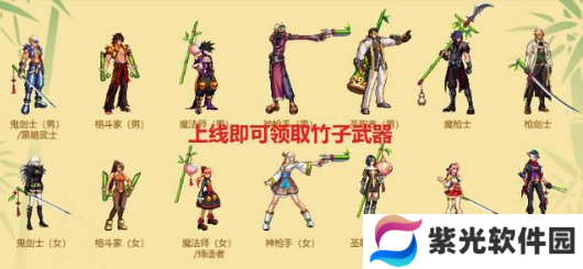 【2、竹子武器】。竹子武器装扮,每个职业设计不同,萝卜青菜各有所爱,个别职业挺好看的,比如暗夜使者、魔法师、圣职者等等。