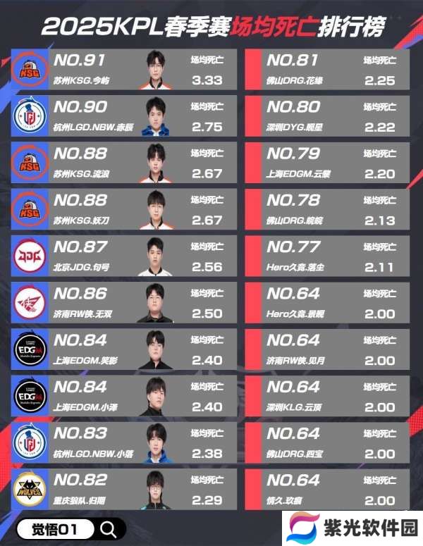 春季赛首周场均死亡数榜单(倒数):今屿最高,妖刀、句号、归期上榜,你怎么看?