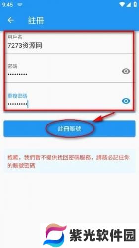 然后填写用户名和密码,任意即可,并点击“注册账号”。