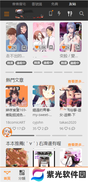 2、在主页中你可以看到各式各样的漫画,包含各种排行榜;